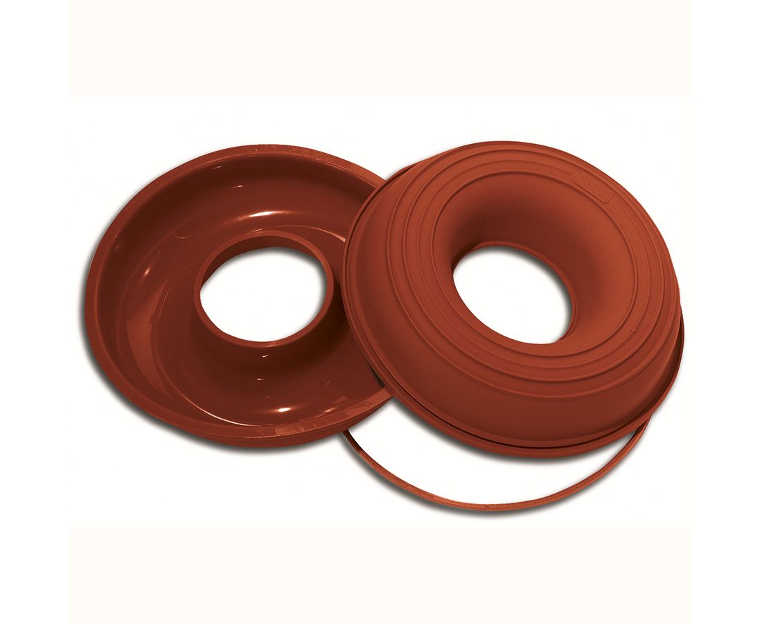Форма выдерживает температуру от - 60 до +, 230 °С. Силикон не содержит вредный бисфенол-А и соответствует европейским стандартам качества. Он не имеет запаха и не дымится во время готовки. Материал гибкий, прочный, устойчивый к перепадам температур. Форма выдерживает до 3000 использований. Перед использованием необходимо смазать изделие маслом. Диаметр: 24 см. Размеры: 26 см х 30 см х h 5,5 см. Объем: 1,5 л.
