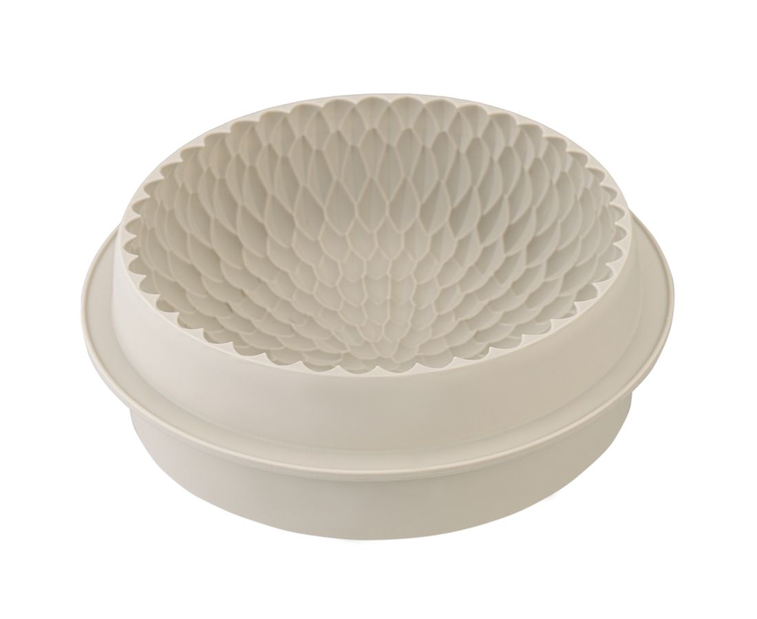 Форма выдерживает температуру от - 60 до +, 230 °С. Силикон не содержит вредный бисфенол-А и соответствует европейским стандартам качества. Он не имеет запаха и не дымится во время готовки. Материал гибкий, прочный, устойчивый к перепадам температур. Форма выдерживает до 3000 использований. Перед использованием необходимо смазать изделие маслом. Диаметр - 19 см. Объем: 1,6 л.