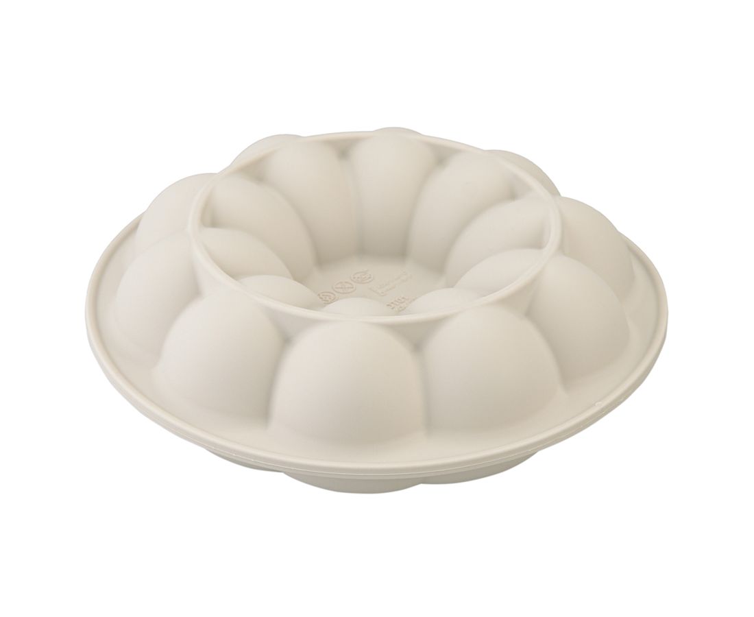 Форма выдерживает температуру от - 60 до +, 230 °С. Силикон не содержит вредный бисфенол-А и соответствует европейским стандартам качества. Он не имеет запаха и не дымится во время готовки. Материал гибкий, прочный, устойчивый к перепадам температур. Форма выдерживает до 3000 использований. Перед использованием необходимо смазать изделие маслом. Диаметр: 16 см, объем: 1л.