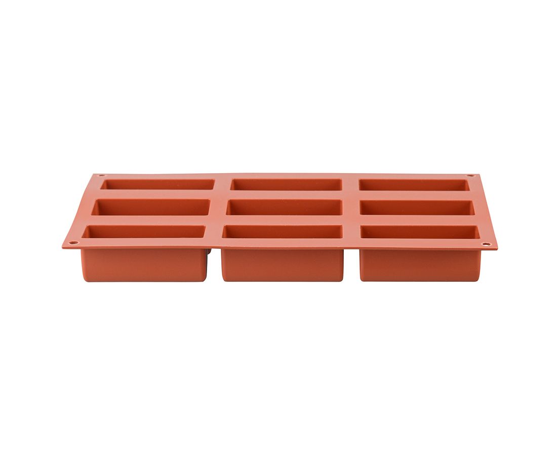 Форма выдерживает температуру от - 60 до +, 230 °С. Силикон не содержит вредный бисфенол-А и соответствует европейским стандартам качества. Он не имеет запаха и не дымится во время готовки. Материал гибкий, прочный, устойчивый к перепадам температур. Форма выдерживает до 3000 использований. Перед использованием необходимо смазать изделие маслом. Размер формы: 8,4 х 3,2 х 3,5 см. Объем 1 ячейки: 83 мл.