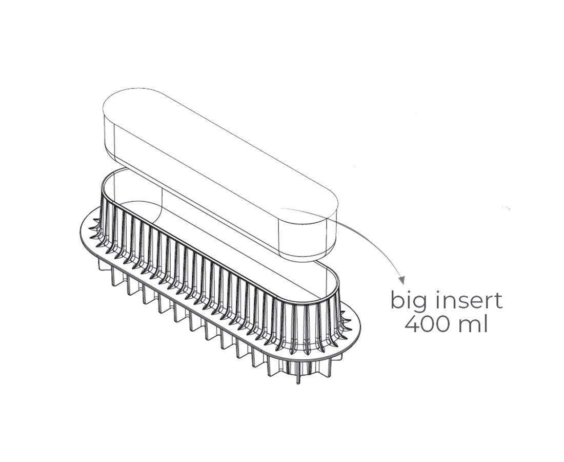 Форма включает две секции объемом 190 мл и 400 мл. Аксессуар выдерживает температуру от - 60 до +, 230 °С. Силикон не содержит вредный бисфенол-А и соответствует европейским стандартам качества. Он не имеет запаха и не дымится во время готовки. Материал гибкий, прочный, устойчивый к перепадам температур. Форма выдерживает до 3000 использований. Перед использованием необходимо смазать изделие маслом. Объем: 590 мл.