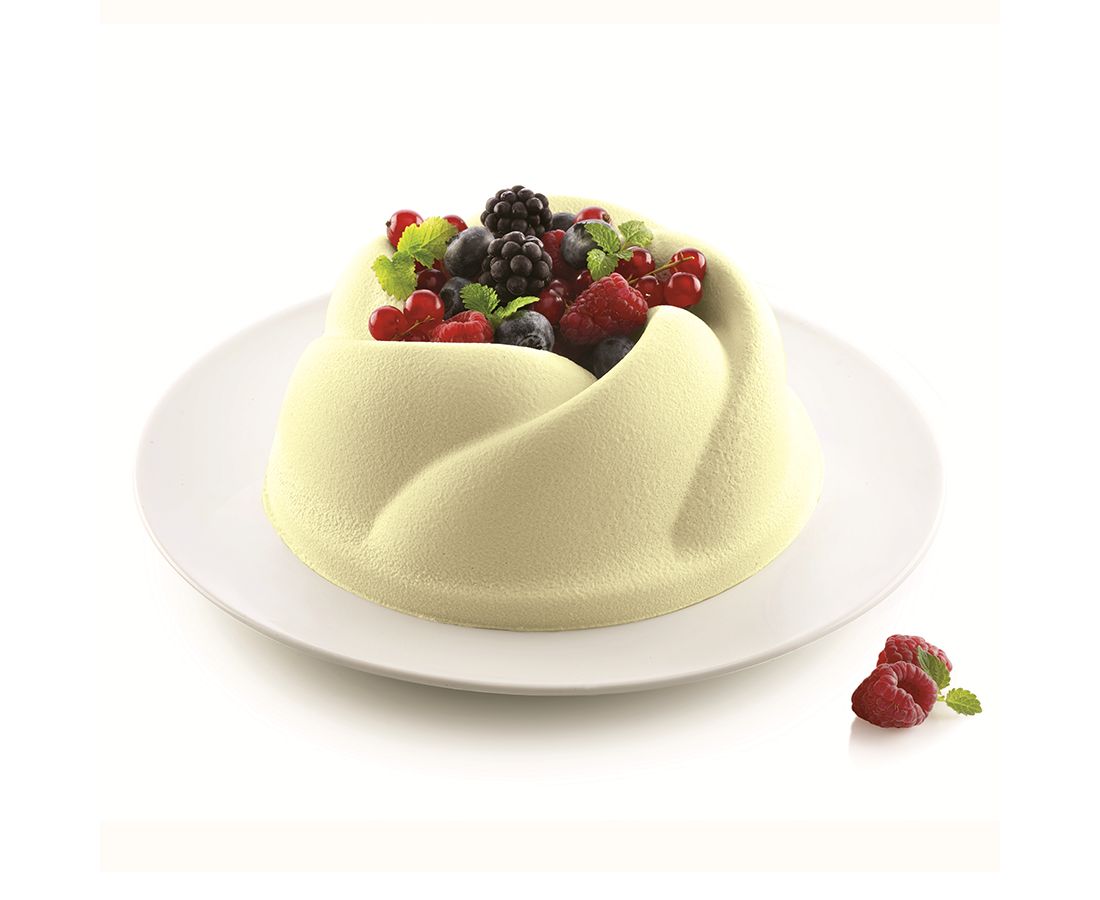 Форма выдерживает температуру от - 60 до +, 230 °С. Силикон не содержит вредный бисфенол-А и соответствует европейским стандартам качества. Он не имеет запаха и не дымится во время готовки. Материал гибкий, прочный, устойчивый к перепадам температур. Форма выдерживает до 3000 использований. Перед использованием необходимо смазать изделие маслом. Диаметр - 18 см. Объем - 1,1 л.