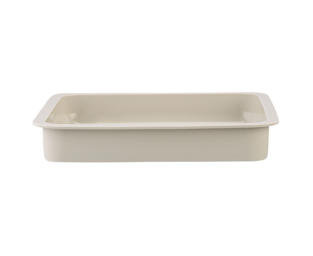 При чистке не используйте острые предметы, не режьте десерты прямо в форме. Можно мыть в посудомоечной машине при условии, что не используются агрессивные средства с осветляющим или ароматическим эффектом, это приводит к появлению на форме белых пятен и налета. Контакт с такими продуктами, как кокосовое масло и томаты, приводит к появлению пятен, которые легко устранить, положив форму на час в духовку, разогретую на 200-220 °С. Для удаления жира достаточно прокипятить около 10 минут. Подходит для хранения в холодильнике.