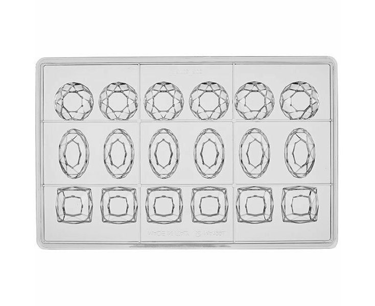 Форма для шоколада «Бриллианты 3-х видов», 18 ячеек, поликарбонат, H=26 мм, L=275 мм, B=175 мм, Martellato
