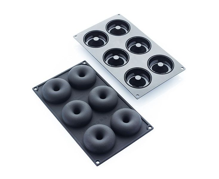Форма для выпечки «Пончик», 6 ячеек, силикон, L=29,7 см, B=17,6 см, цвет черный, Martellato