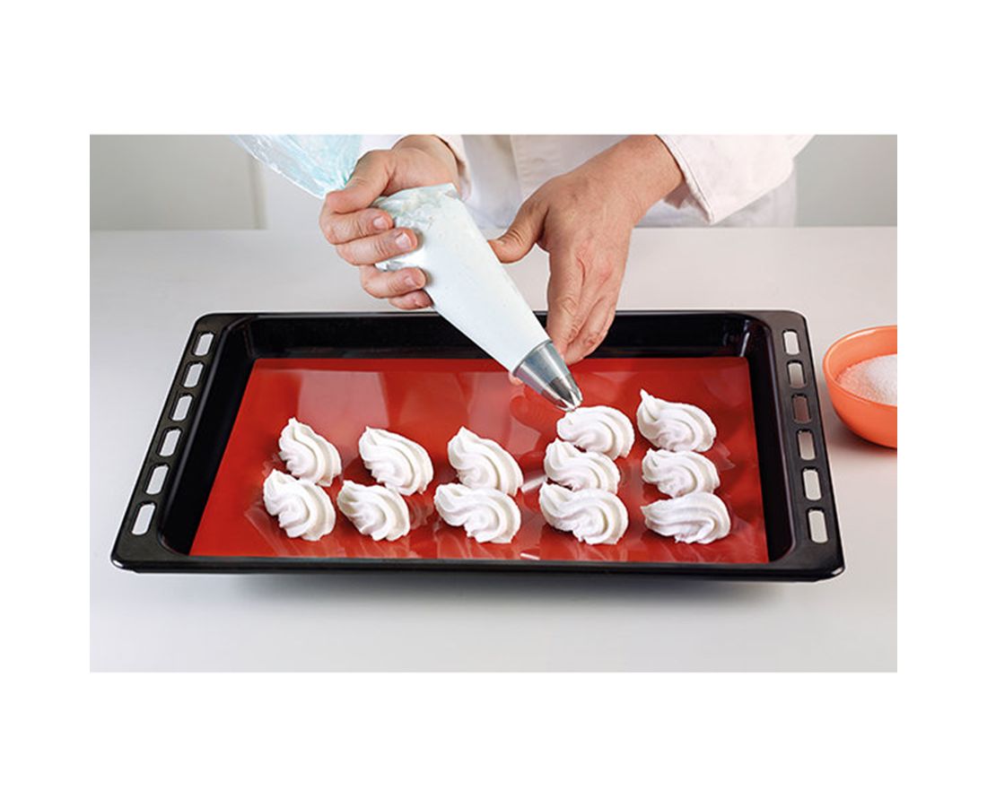Коврик не скользит при раскатывании теста и не прилипает к изделиям в духовке. Силикон не содержит вредный бисфенол-А и соответствует европейским стандартам качества. Он не имеет запаха и не дымится во время готовки. Материал гибкий, прочный, устойчивый к перепадам температур.