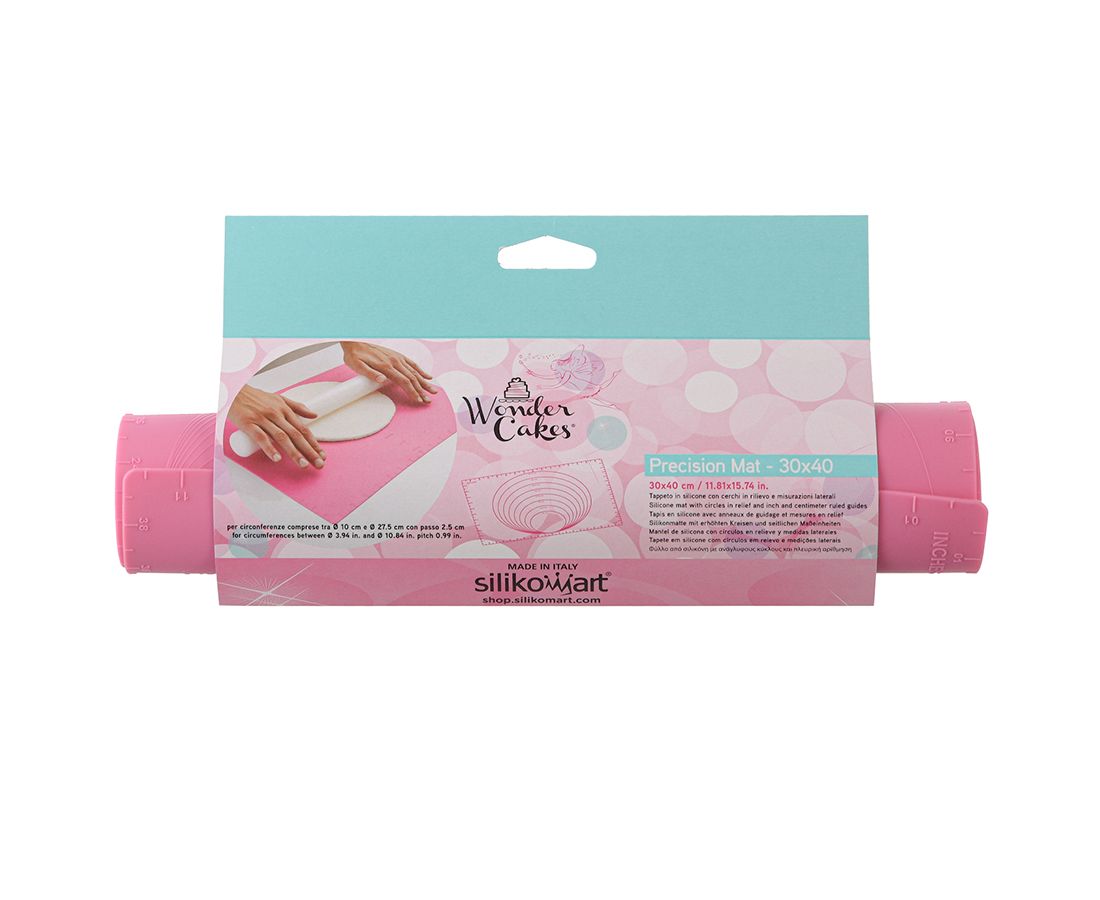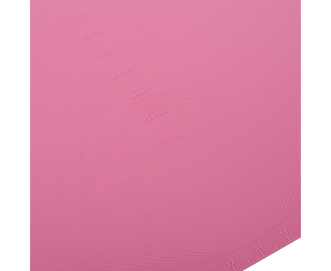 Силиконовый коврик с рельефными кругами и мерными делениями идеально подходит для контроля размеров теста при раскатывании.