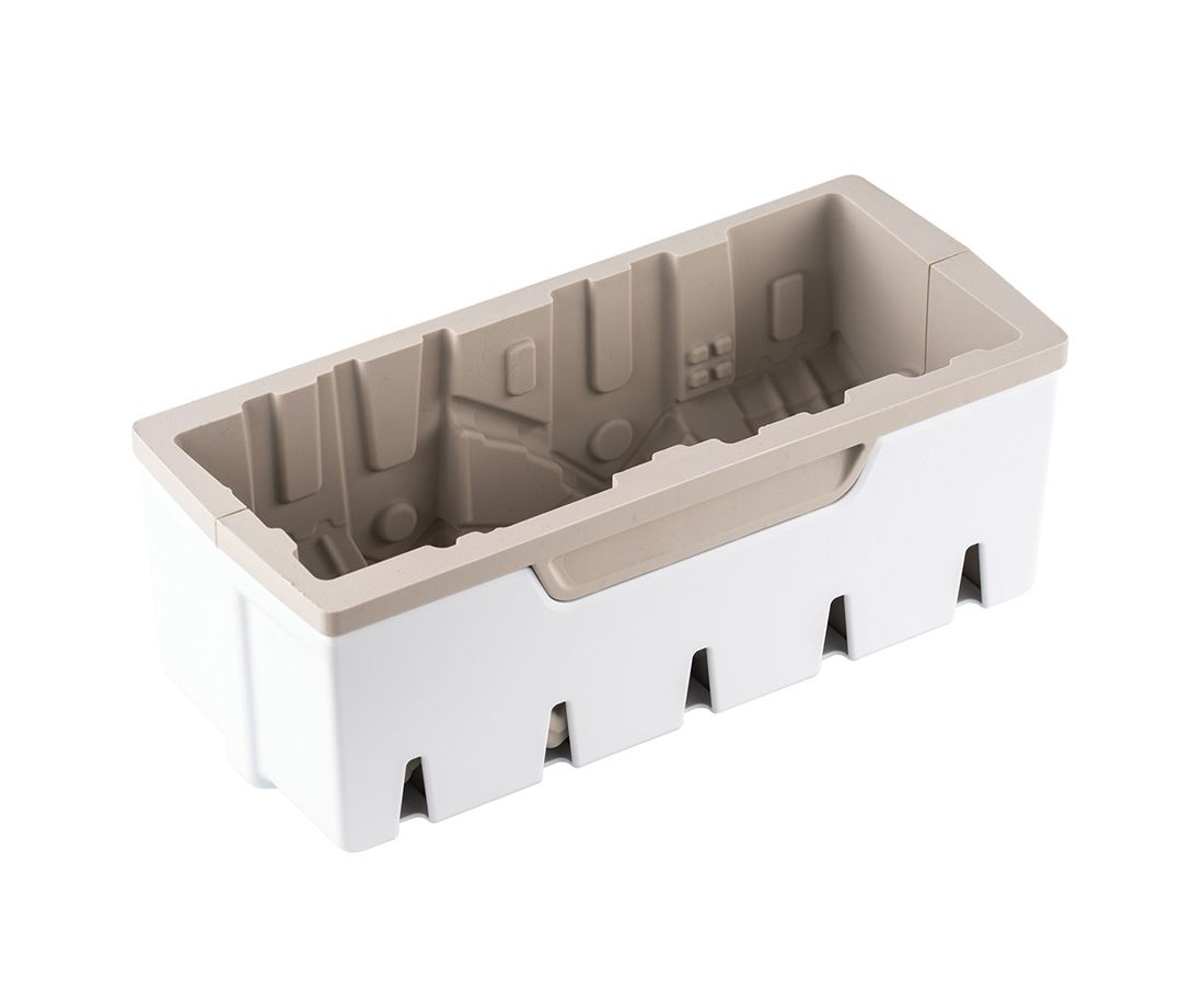 Набор состоит из двух силиконовых и одной пластиковой формы. Мусс заливается в форму и ставится в морозилку до затвердевания. Силикон не содержит вредный бисфенол-А и соответствует европейским стандартам качества. Размеры формы: 24 х 10 х 8,2 см. Объем: 1,2 л.