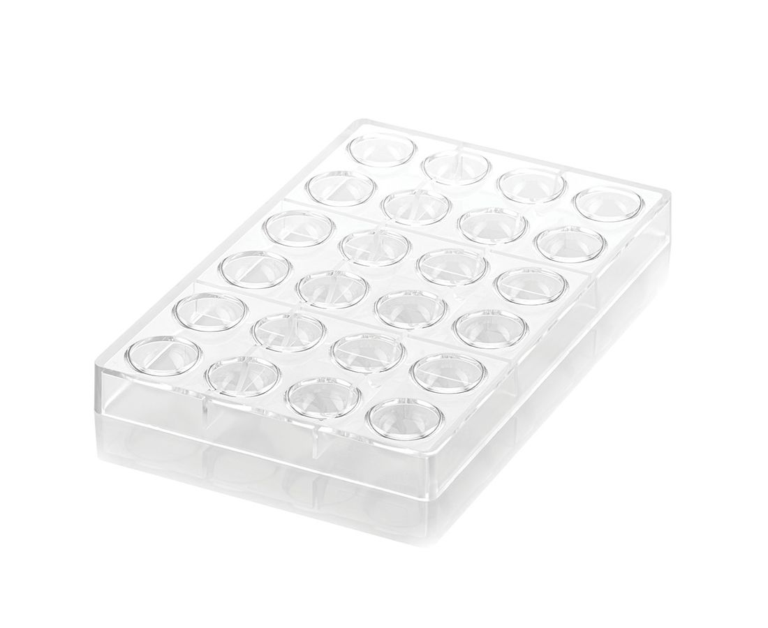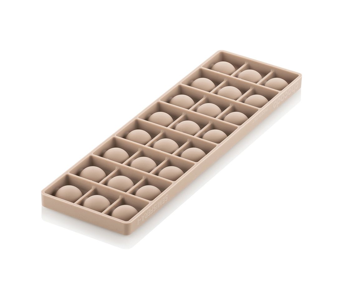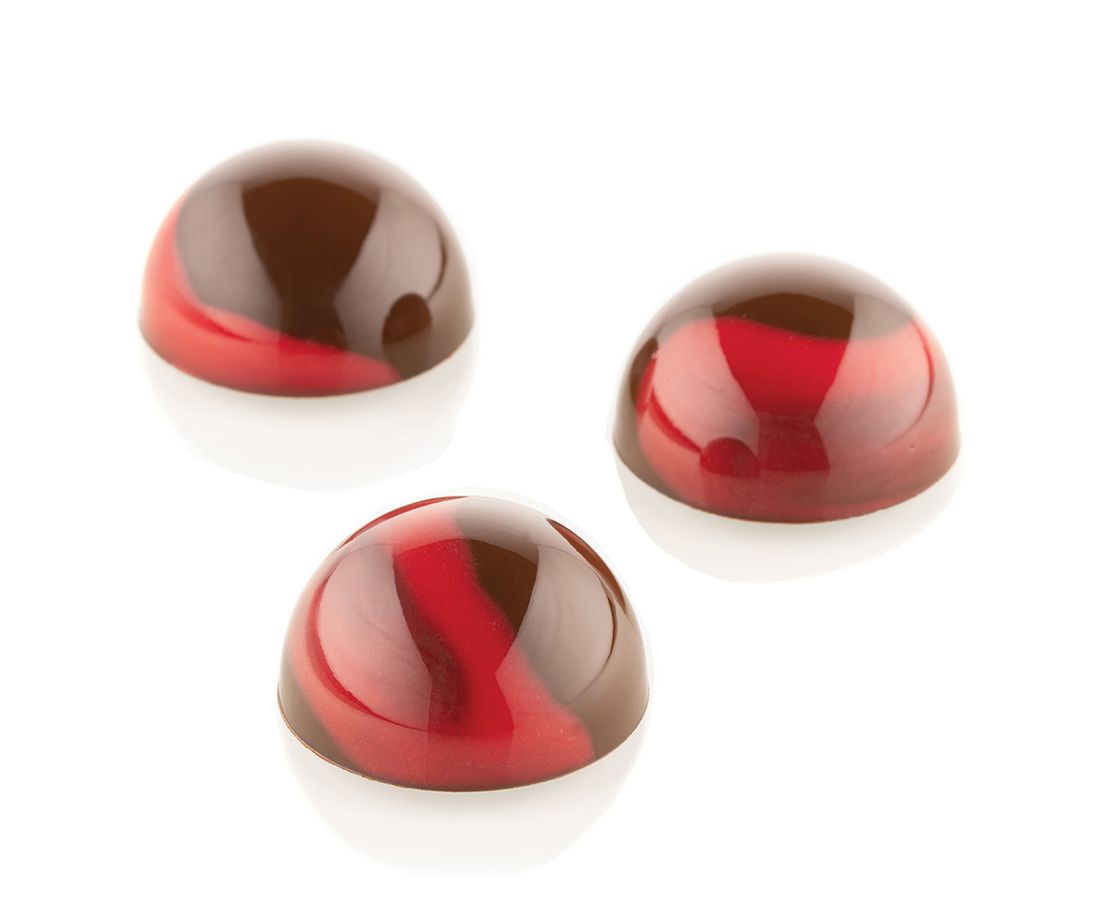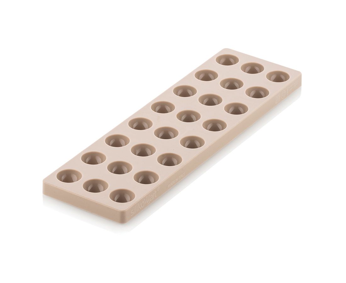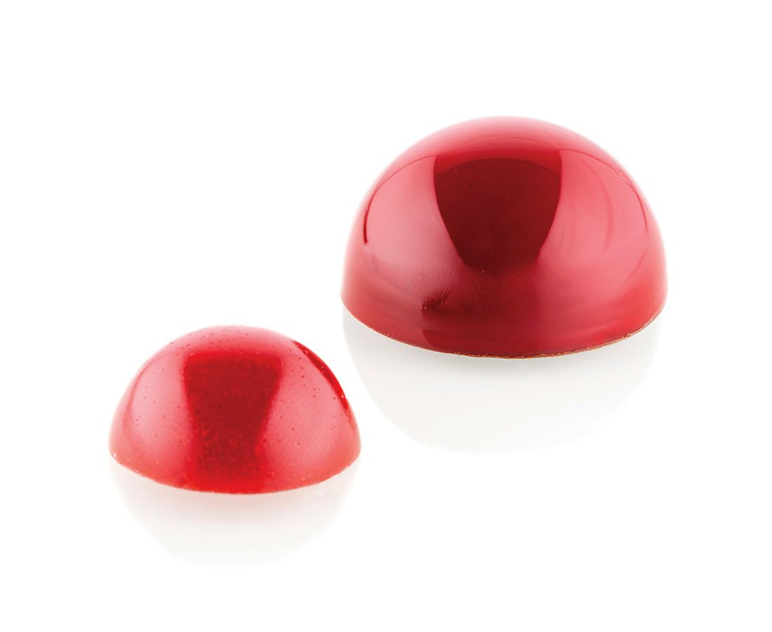 Одна форма выполнена из тритана, вторая – из силикона. Материалы устойчивы к перепадам температуры, не содержат вредных соединений, не впитывают запахи и загрязнения. Изделия позволяют приготовить желейные или шоколадные конфеты разных размеров в форме полусферы.